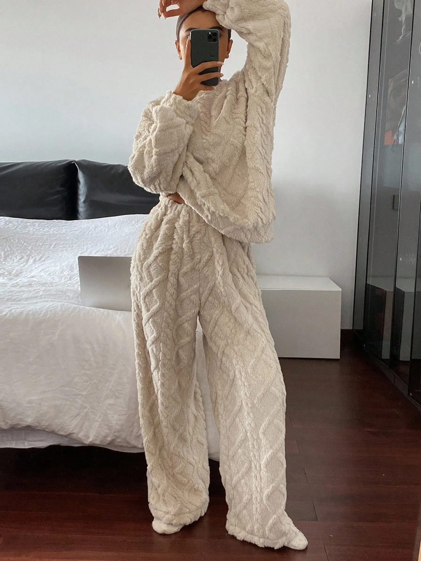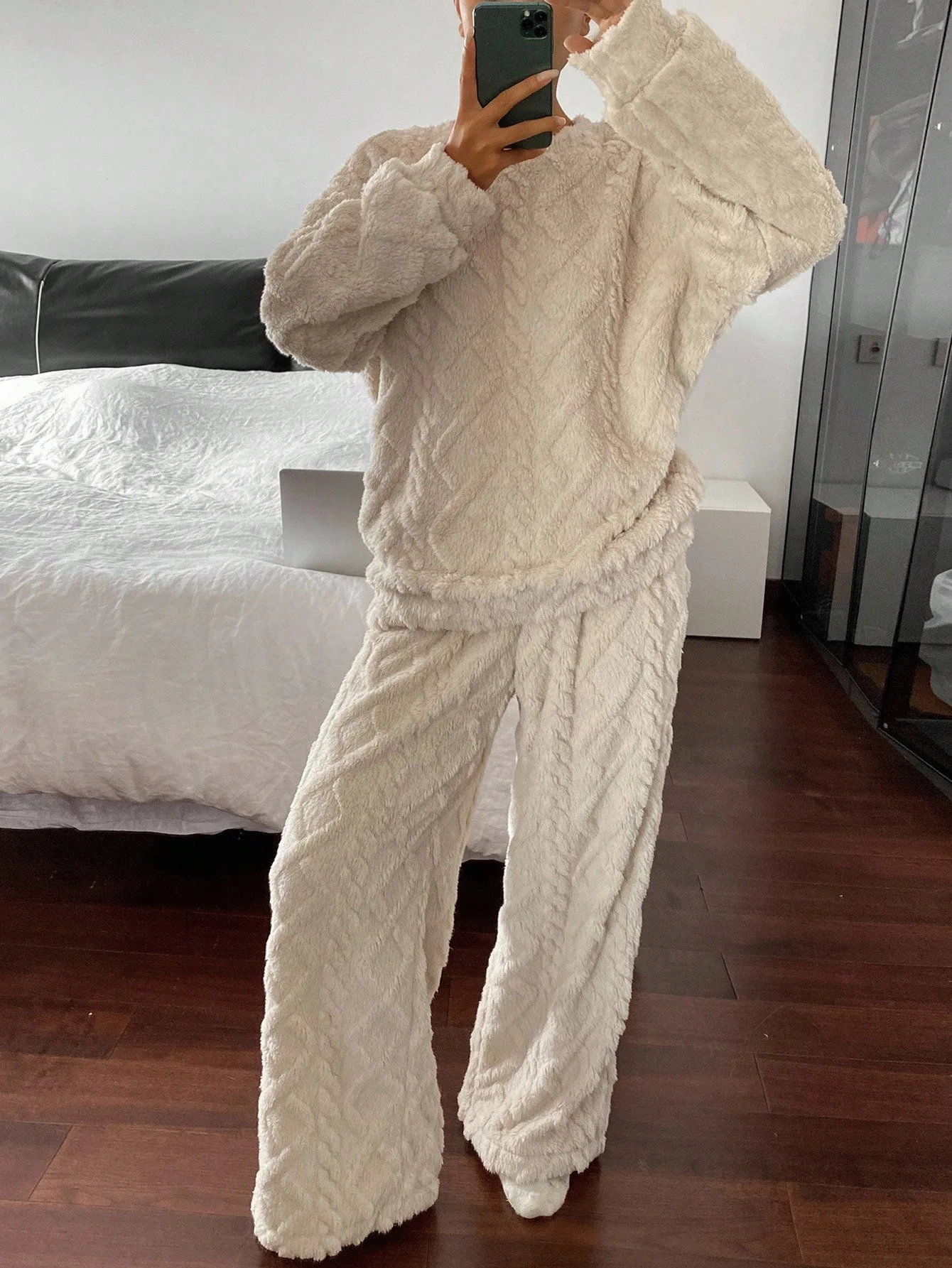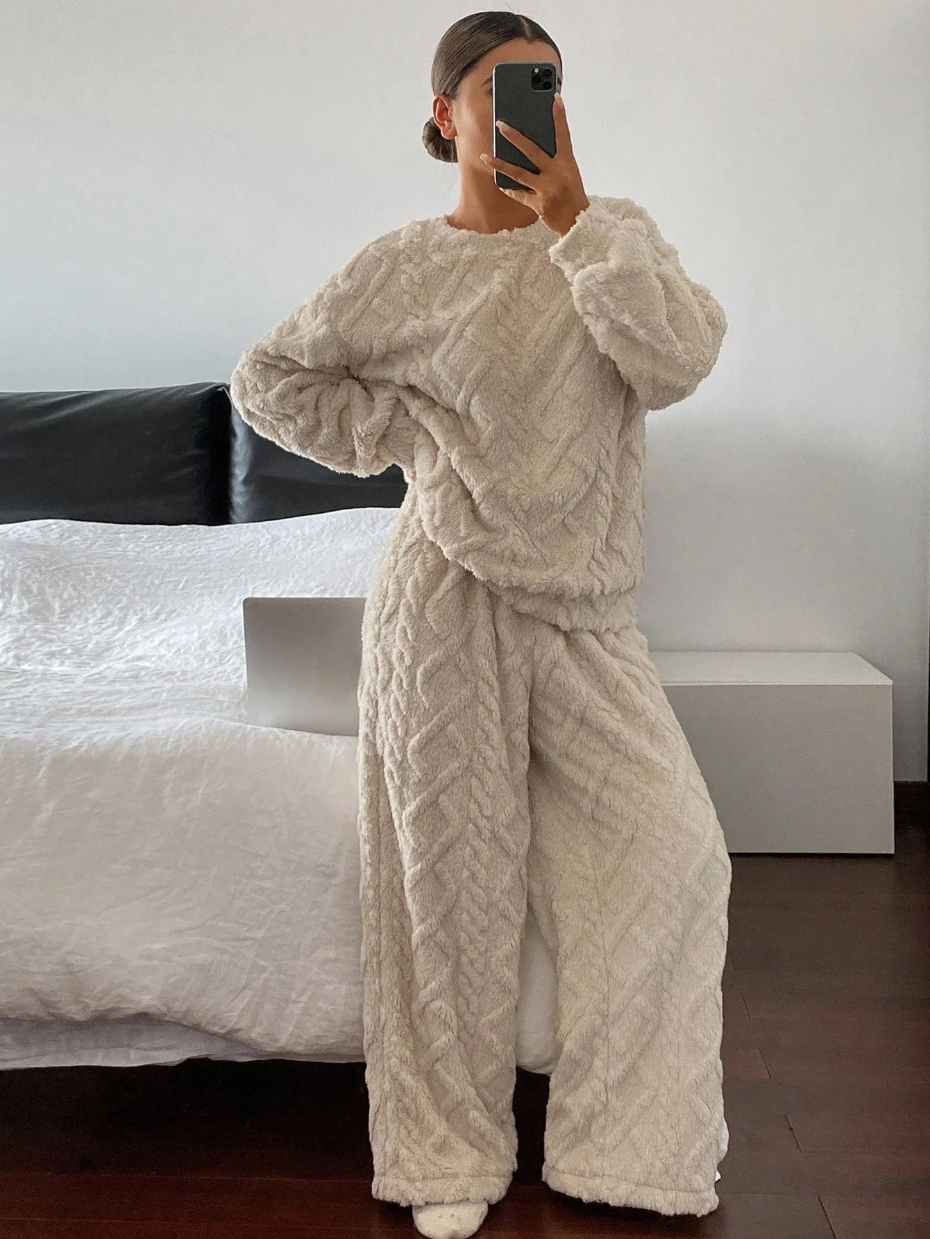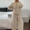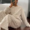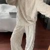 - Style: Two-piece loungewear set (pullover top + wide-leg pants)