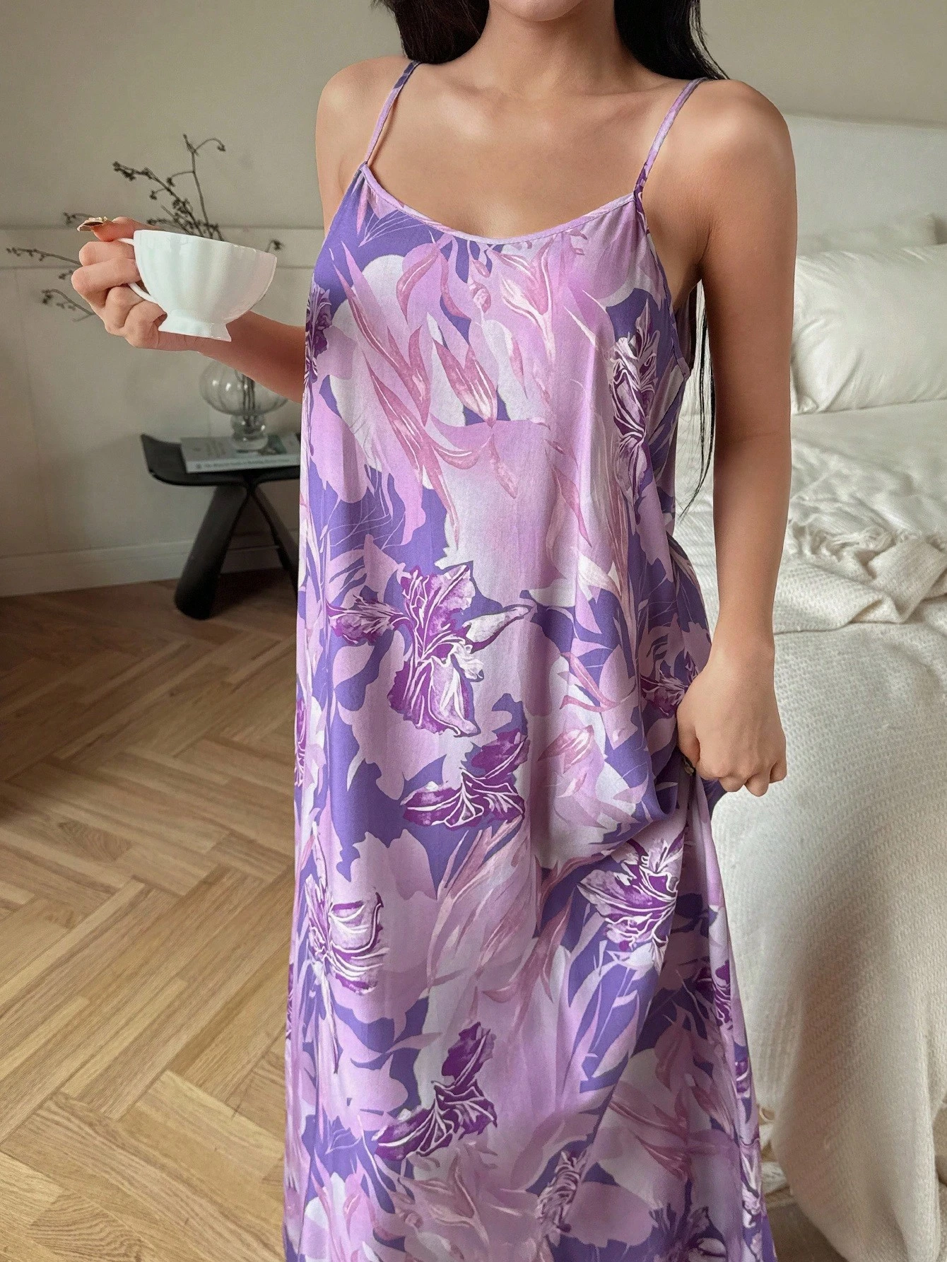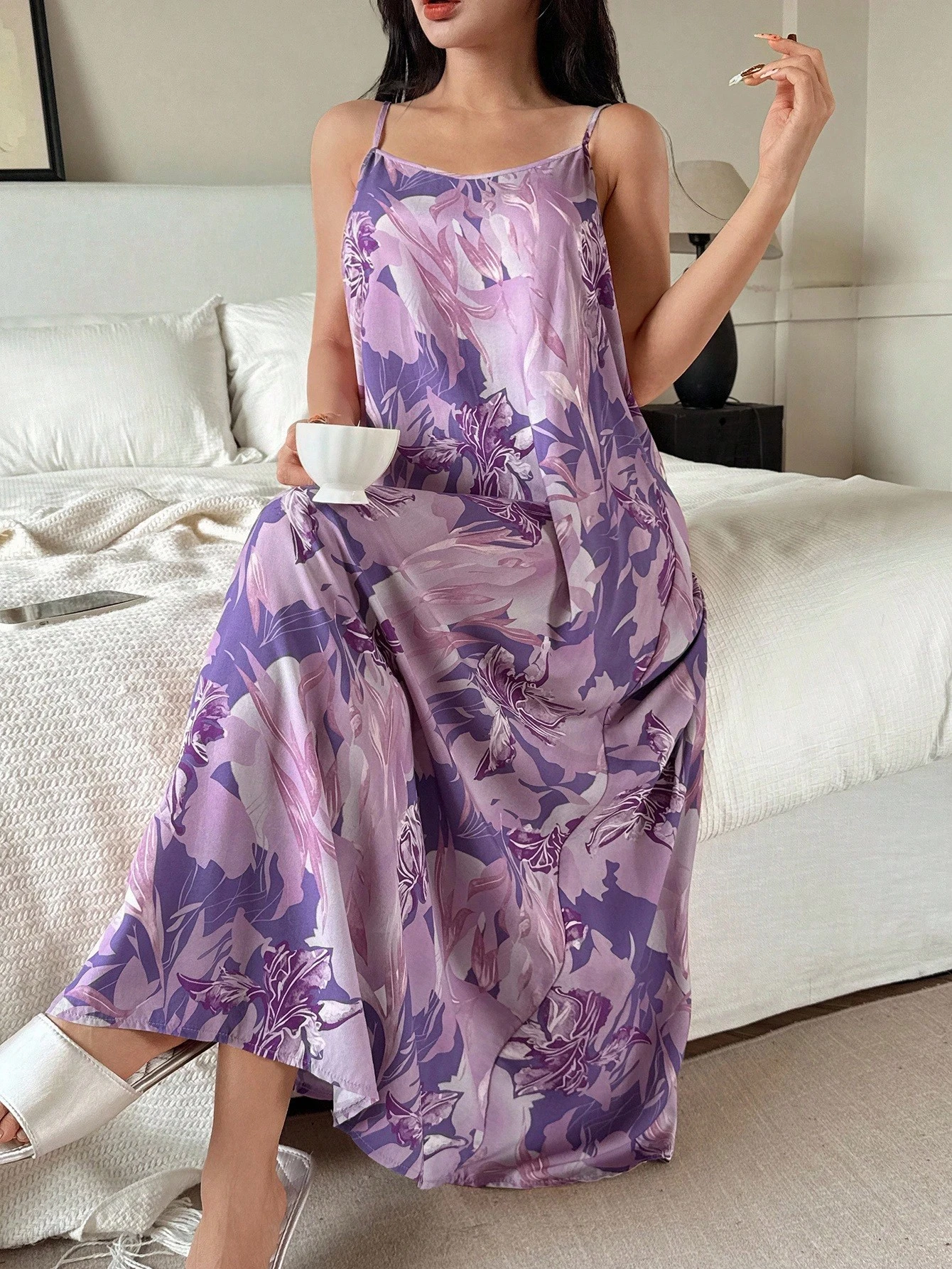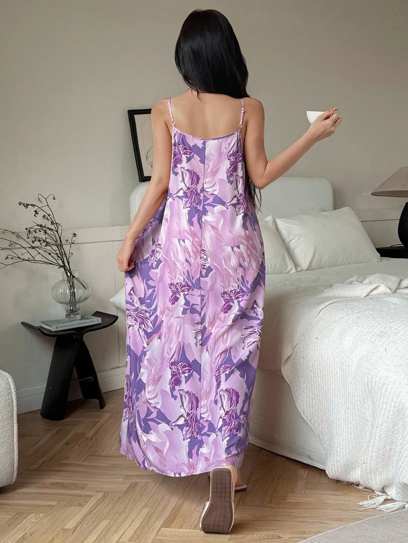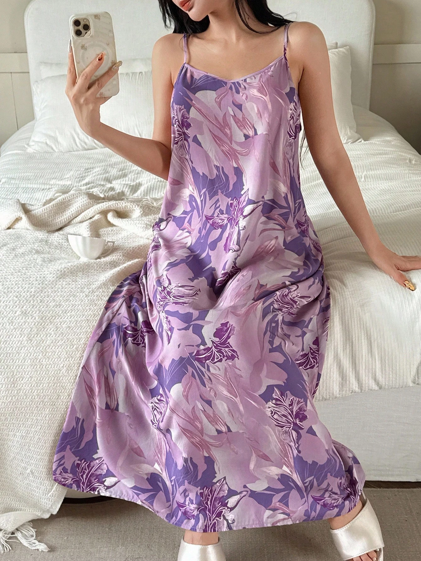 Step into effortless elegance with this floral satin maxi slip dress. Lightweight and flowing, it drapes beautifully for both lounging at home or enjoying summer evenings out. Its delicate straps and soft floral print add charm and feminine grace to your look.