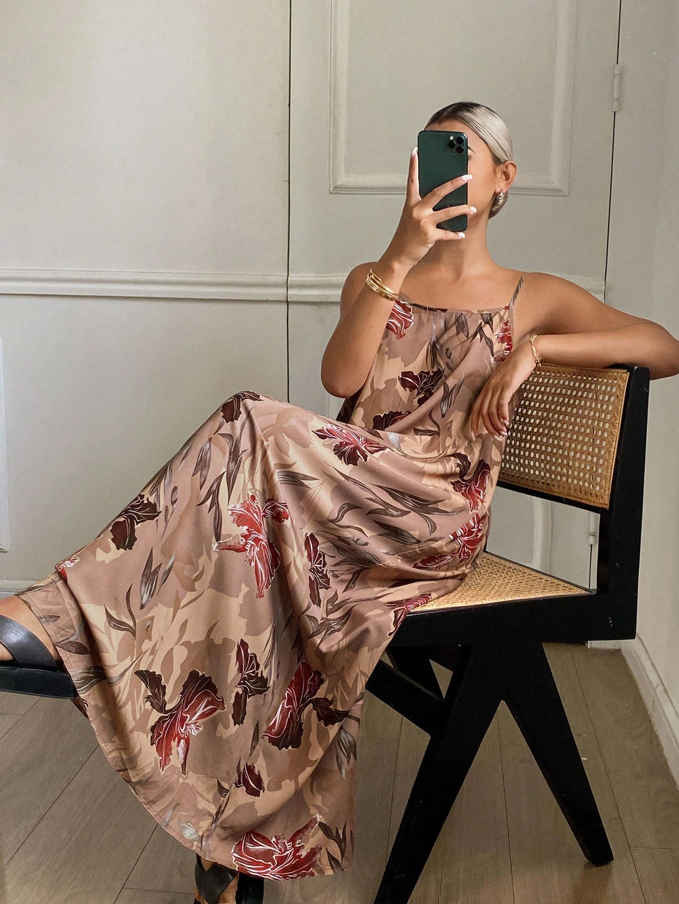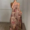 Step into effortless elegance with this floral satin maxi slip dress. Lightweight and flowing, it drapes beautifully for both lounging at home or enjoying summer evenings out. Its delicate straps and soft floral print add charm and feminine grace to your look.
