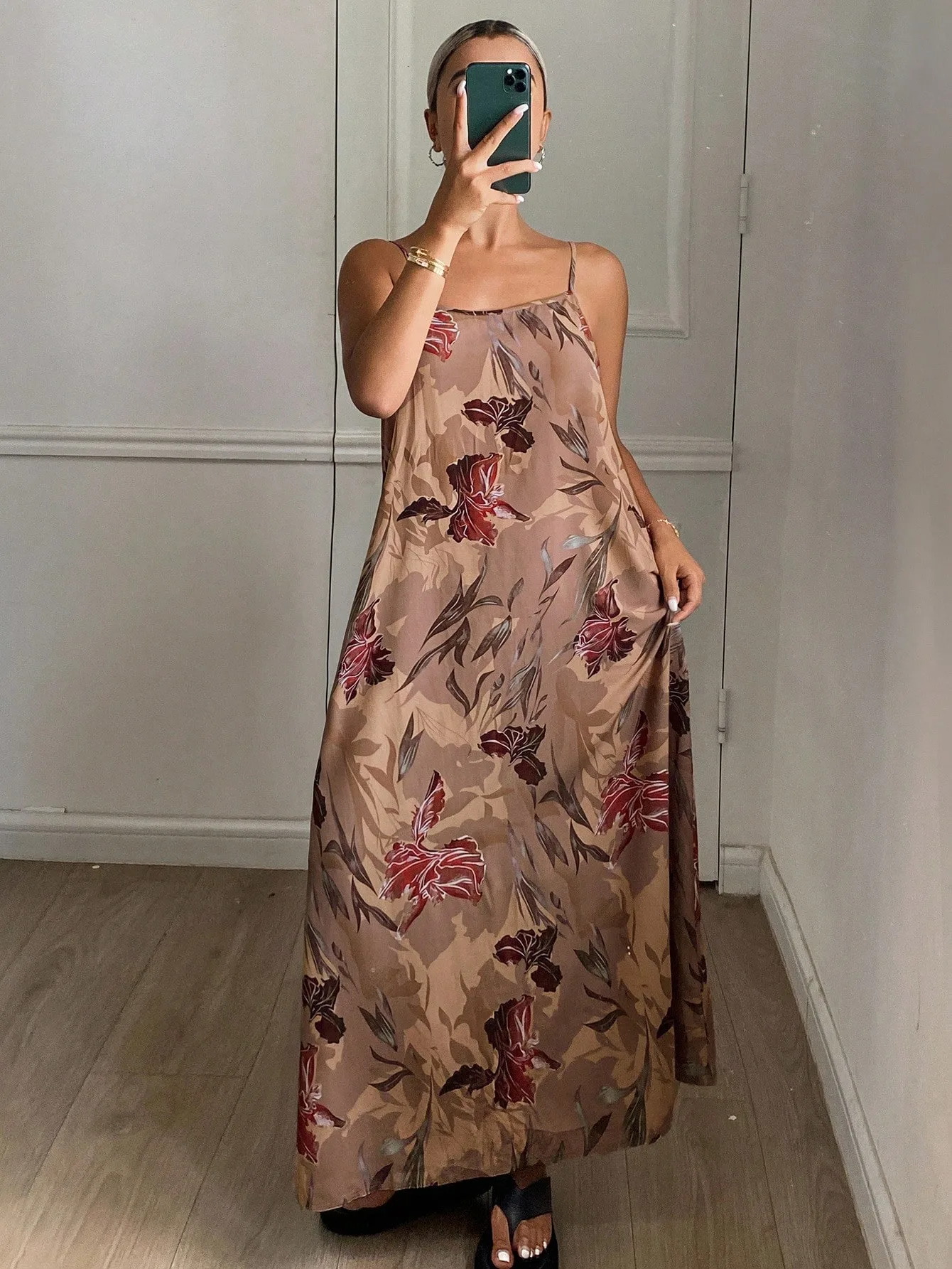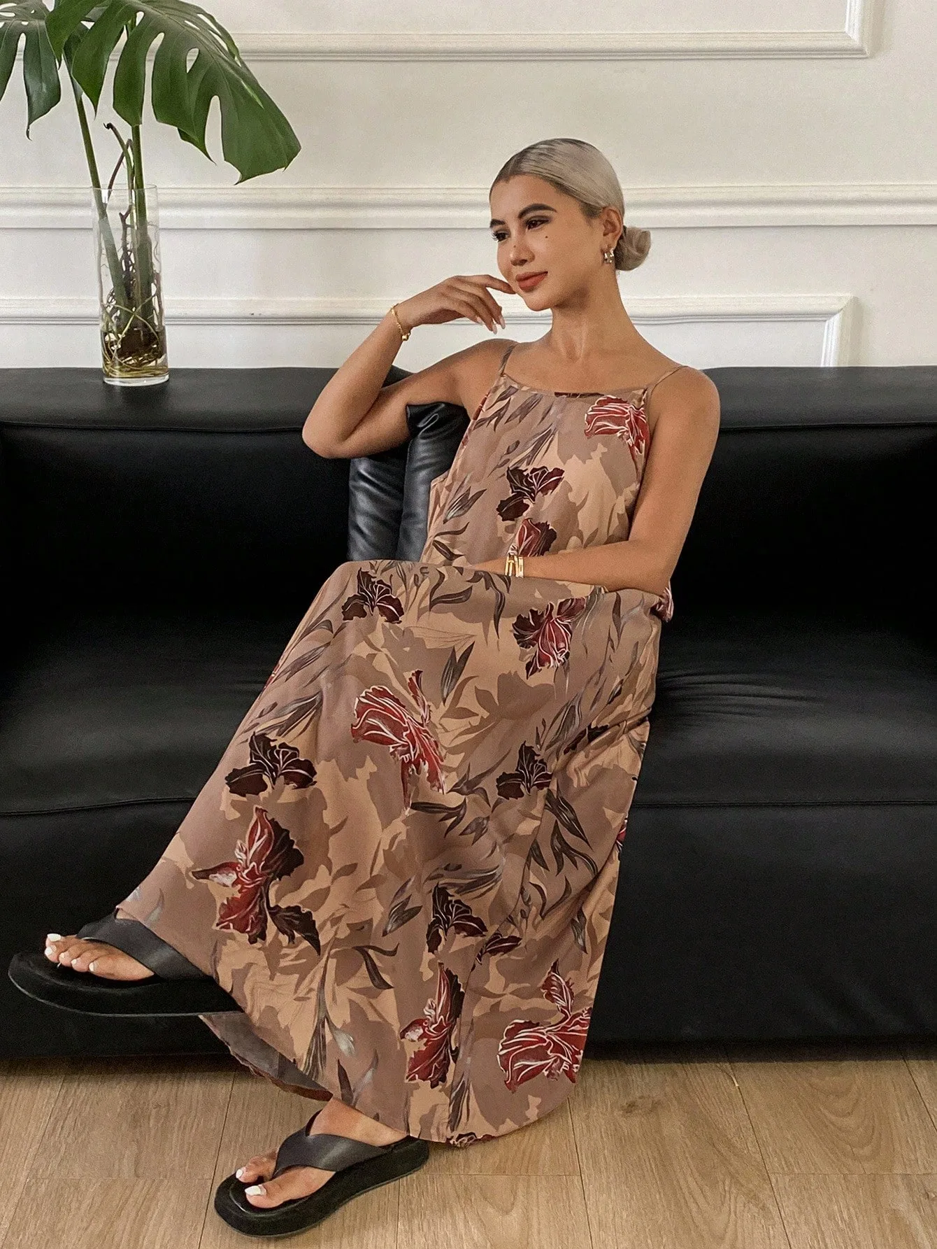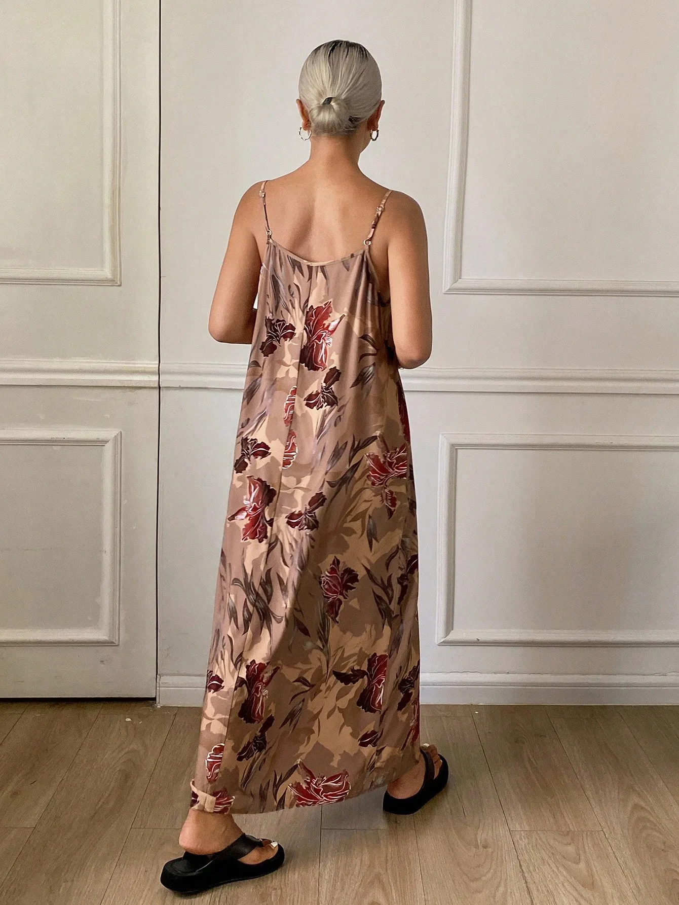 - Style: Maxi slip dress with relaxed fit